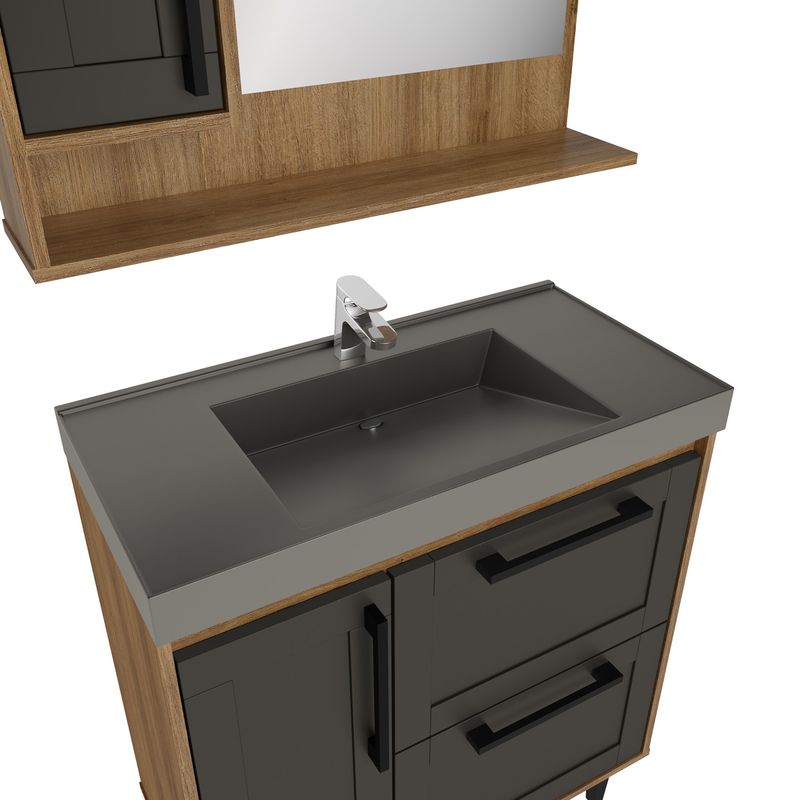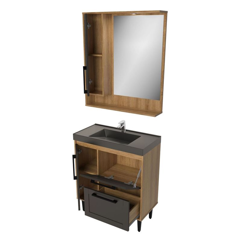 MóveisBanheiroConjuntosGabinete de Banheiro com Cuba e Espelheira com LED 80cm Multimóveis CR10140 Lâmina Mel/Grafite