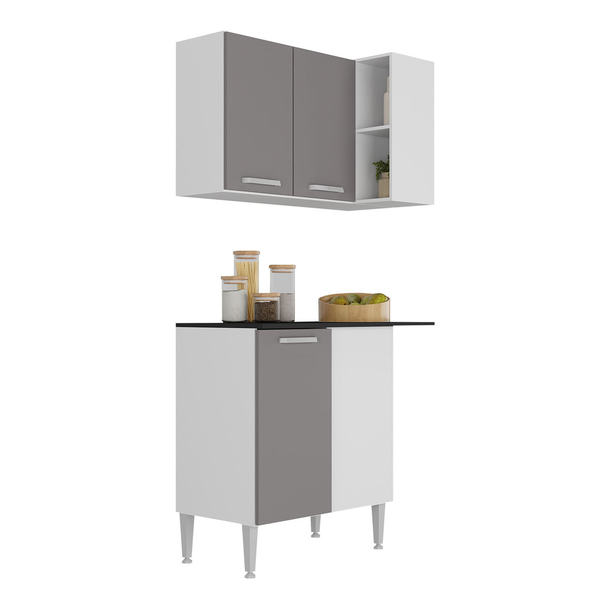 Kit Armário de Cozinha Aéreo Canto com Balcão 90cm 3 Portas Pequim Multimóveis MP2381 Madeirado/Preto R$ 499,99 no pixou em até 8x de R$ 62,49 sem jurosLoading...Cores