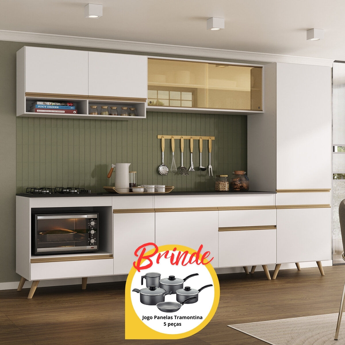 Cozinha Completa c/Balcão para Cooktop Veneza MP2267 Multimóveis + Brinde Jogo de Panelas Tramontina Preto/Dourado R$ 2.299,99 no pixou em até 8x de R$ 287,49 sem jurosLoading...Cores
